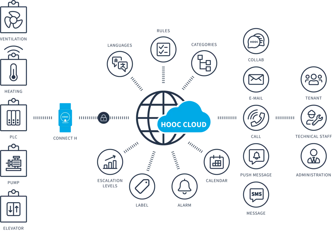 Imagine all the damage, frustrations and costs. Luckily, there’s HOOC Alert: In case of any technical default, our smart alerting will inform you right away. You, the technical staff and all the other people in charge.