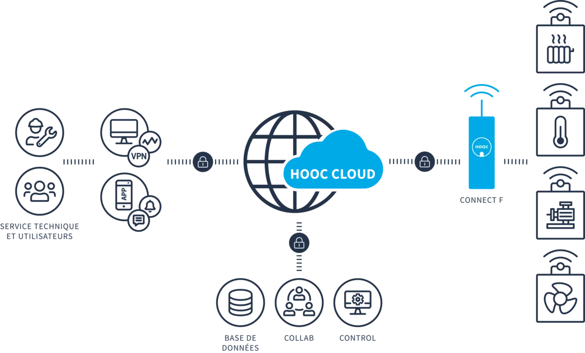 Il est vrai qu'il faut de tout pour faire un monde (informatique). Mais ce qui rend LoRaWAN si indispensable est le fait que grâce à sa connexion radio, il vous offre une couverture là ou d'autres technologies n'arriveront pas : dans des sous-sols, des locaux techniques comme dans des complexes sidérurgiques et autres. Comment ça ? Voyons un peu : LoRaWAN est l'abréviation de Long Range Wide Area Network. C'est-à-dire que contrairement à d'autres technologies sans fil (comme votre Wifi à la maison) qui ont une portée de transmission limitée localement, LoRaWAN envoie (principalement via des capteurs) des paquets de données de petite taille sur de longues distances. Le réseau LoRa peut ainsi fonctionner en mode basse consommation et offrir une couverture intérieure profonde. Et pour couronner le tout, HOOC a développé son propre réseau LoRa, de sorte que sa solution vous fournira non seulement une couverture sans fil à des prix raisonnables, mais répondra également aux normes de sécurité et de sûreté les plus élevées.